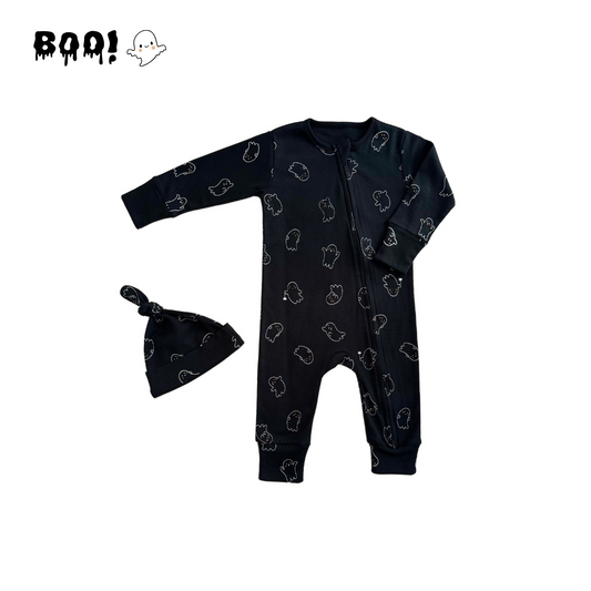 Set Enterizo y Gorro Bebé - Halloween Boooooo! (100% Algodón Orgánico)