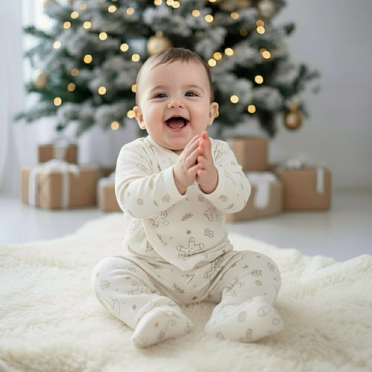 Celebra la primera Navidad de tu bebé con prendas cómodas, suaves y con ese toque especial que hace la diferencia. Nuestra colección está hecha con algodón orgánico certificado GOTS y broches libres de níquel, cuidando la piel y el planeta.